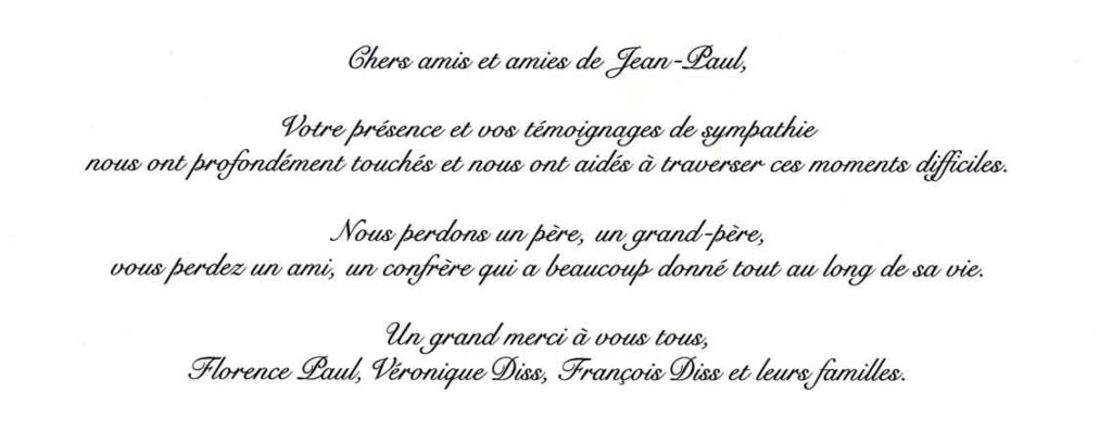 Beaucoup plus qu’un collègue, Jean-Paul, tu étais un véritable ami et nous allons durement ressentir ton absence.